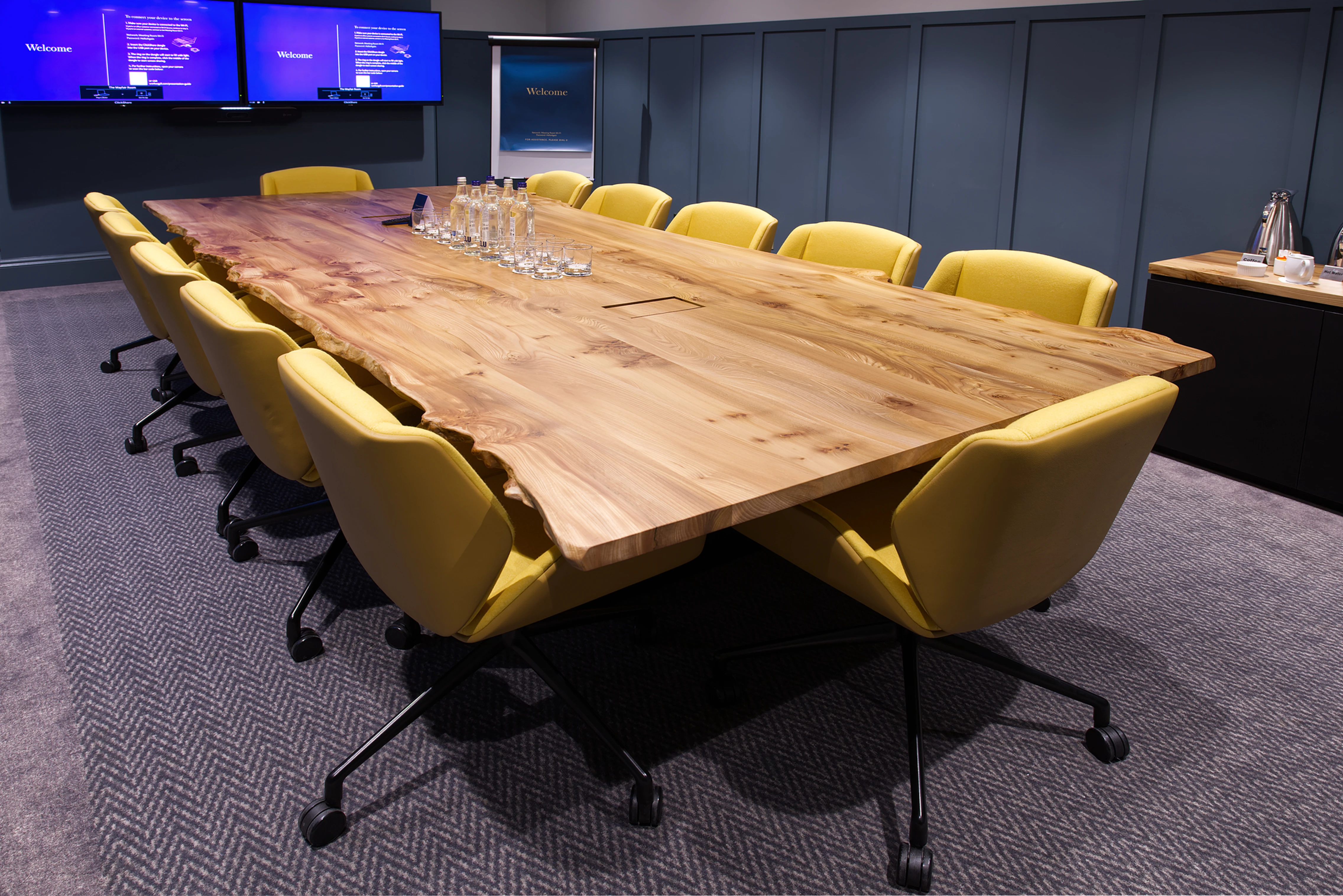 With sustainability at the heart of the table design the cable management was kept simple whilst achieving all the client requirements meaning this solid table will deliver years of service and can be continually resurfaced and reused by the client.